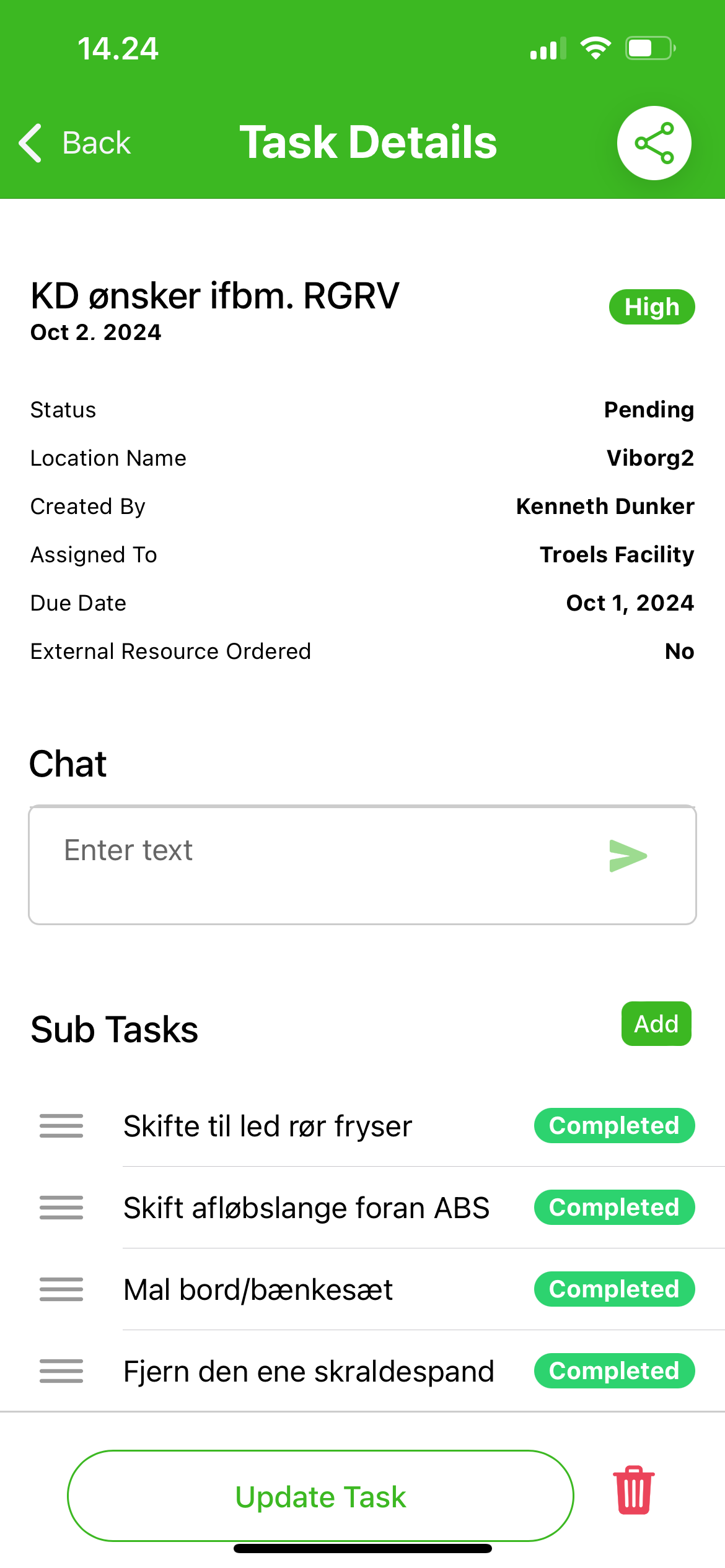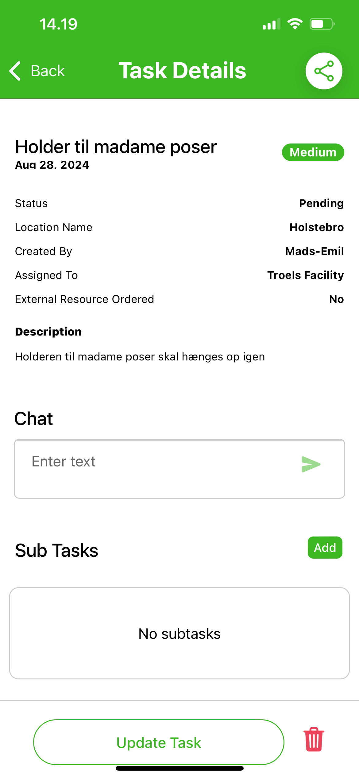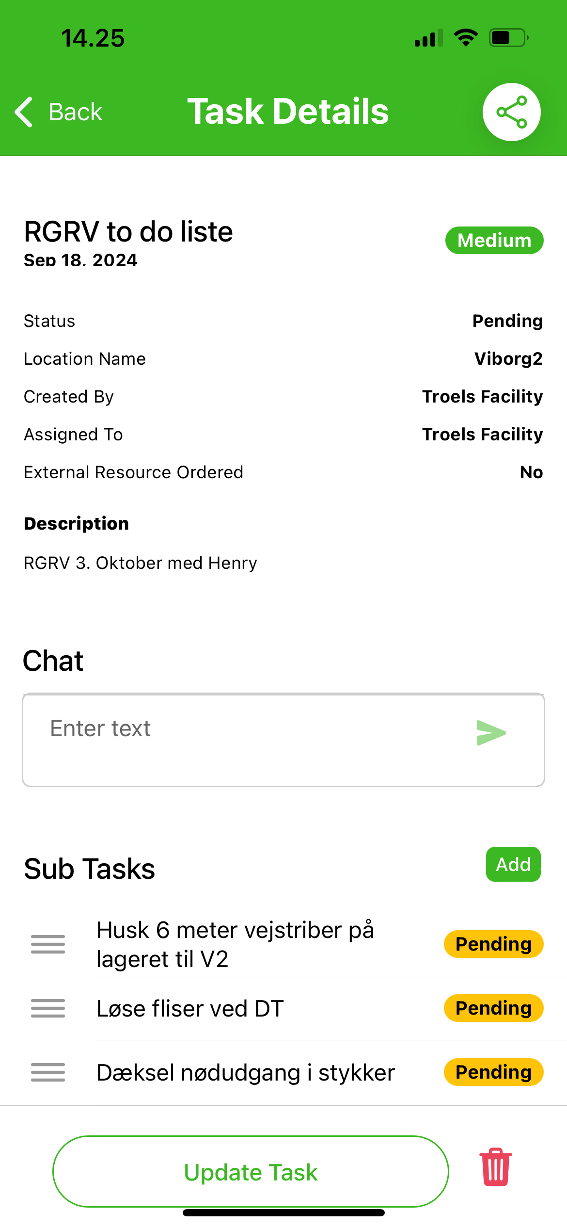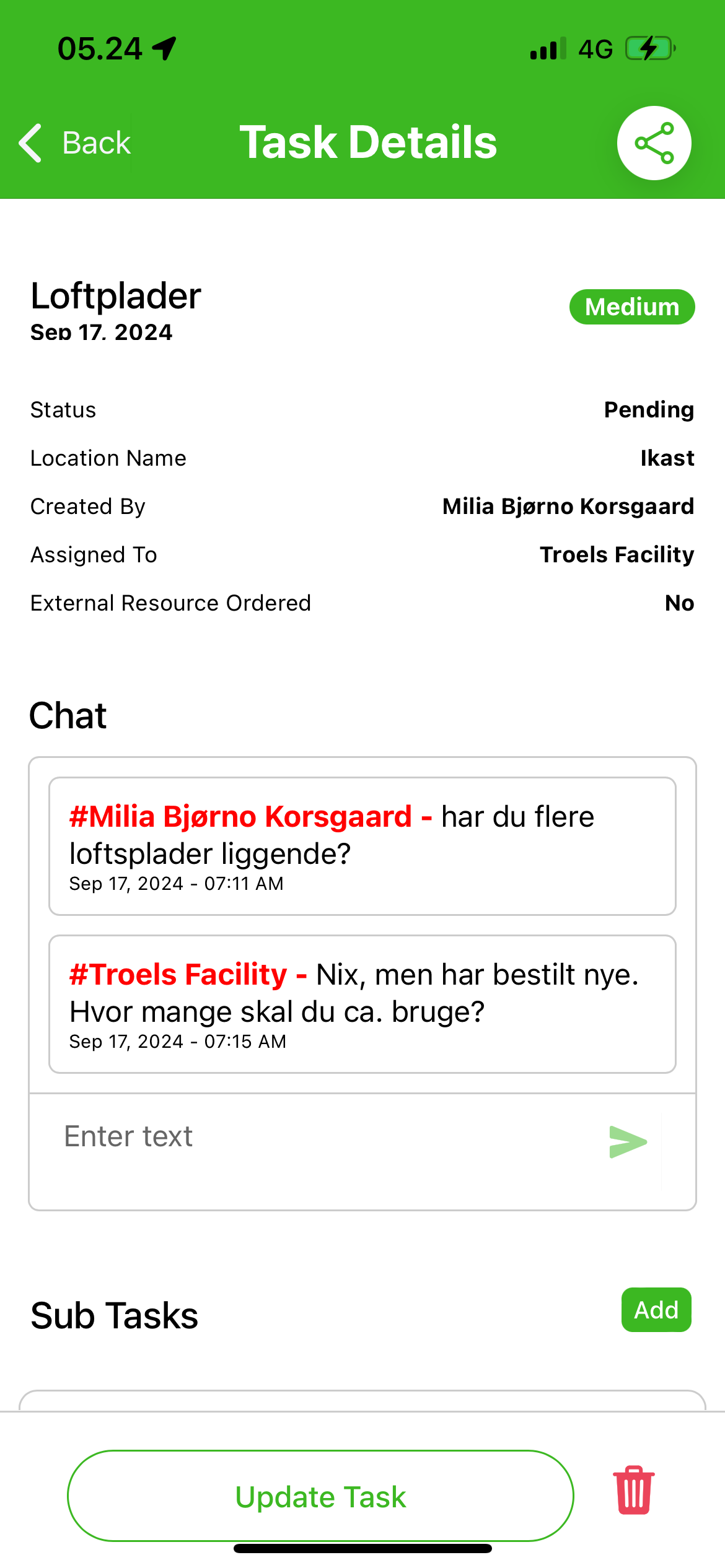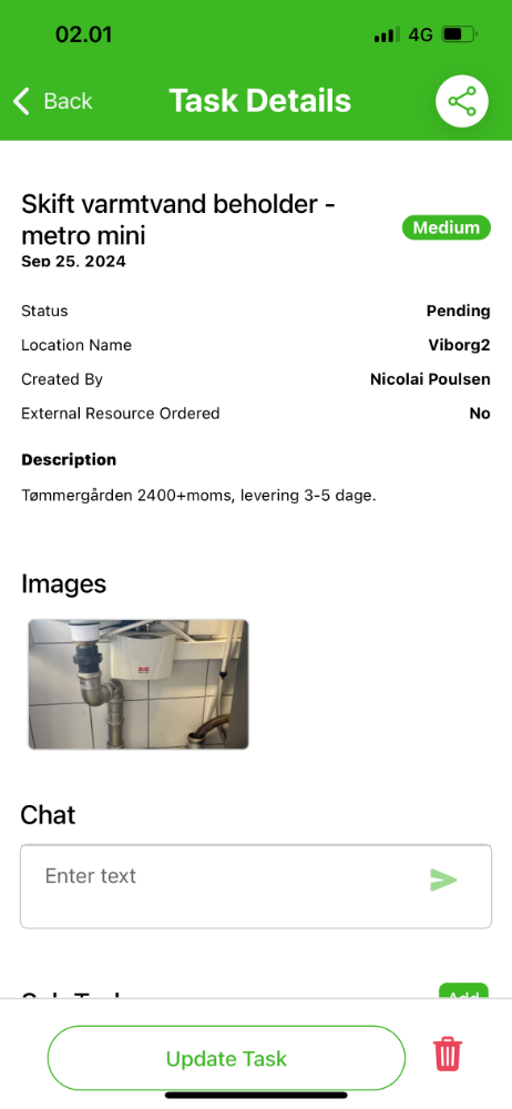 - Chat opportunity within task.